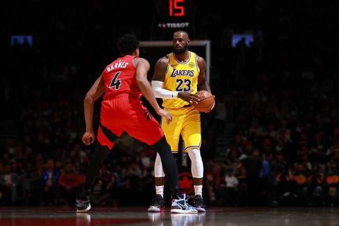 北京时间12月5日,NBA常规赛湖人客场对阵猛龙,东西部第二名球队展开对决,湖人核心东契奇因为孩子出生离队缺席。湖人在里夫斯出色表现引领下取得13分优势,猛龙团队攻势反扑逐步反超比分,双方最后时刻紧咬比分缠斗,詹姆斯助攻八村垒压哨三分绝杀,最终湖人123-120战胜猛龙巩固西部第二,湖人取得对猛龙交锋6连胜,猛龙丢东部第二下滑至东部第三。詹姆斯本场仅得到8分,连续1297场得分上双历史第一纪录终结。