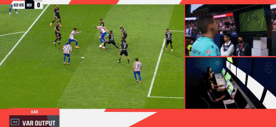 第45+2分钟,尼古拉斯-冈萨雷斯禁区内倒地,VAR介入判定没有犯规