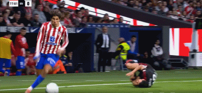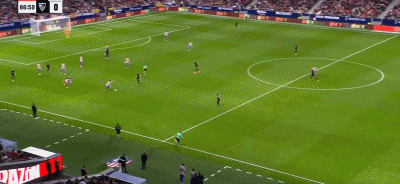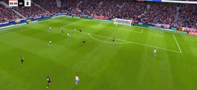 第89分钟,格列兹曼抽射远角入网,马竞3-0领先
